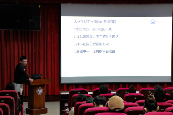 在随机点名提问问题后,于泳指出当前大学生要把握好找工作最看重的方面是什么并给自己找准定位,他提到当前大学生在寻找工作时常有以下问题:想法太多,高不成低不就、随波逐流,没有认清自己、选择单一,没有提前做好准备等。最后,于泳鼓励参会学生:“要某在一条路上走到极致”,这对参会大学生逐渐认清自我并把握好就业途径和奋斗方向提供了帮助。