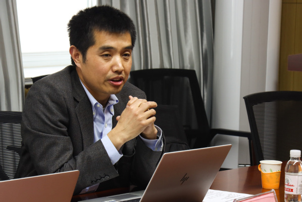 院领导与国际处倾听牟效毅教授讲话 罗焜摄影