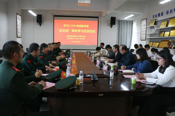 学院党委书记姚成郡,副院长冷凌,党委副书记陈熙等陪同长山舰官兵参观中国石油大学(华东)校史陈列馆,回顾并见证石大艰辛的发展历程、辉煌的办学成就及美好的发展蓝图。参观过后,青年官兵与师生分为两组,一组前往文理楼358会议室进行座谈交流,交流碰撞思想,传达青年声音;一组参观石大校园,欣赏春日石大,增进青年友谊。
