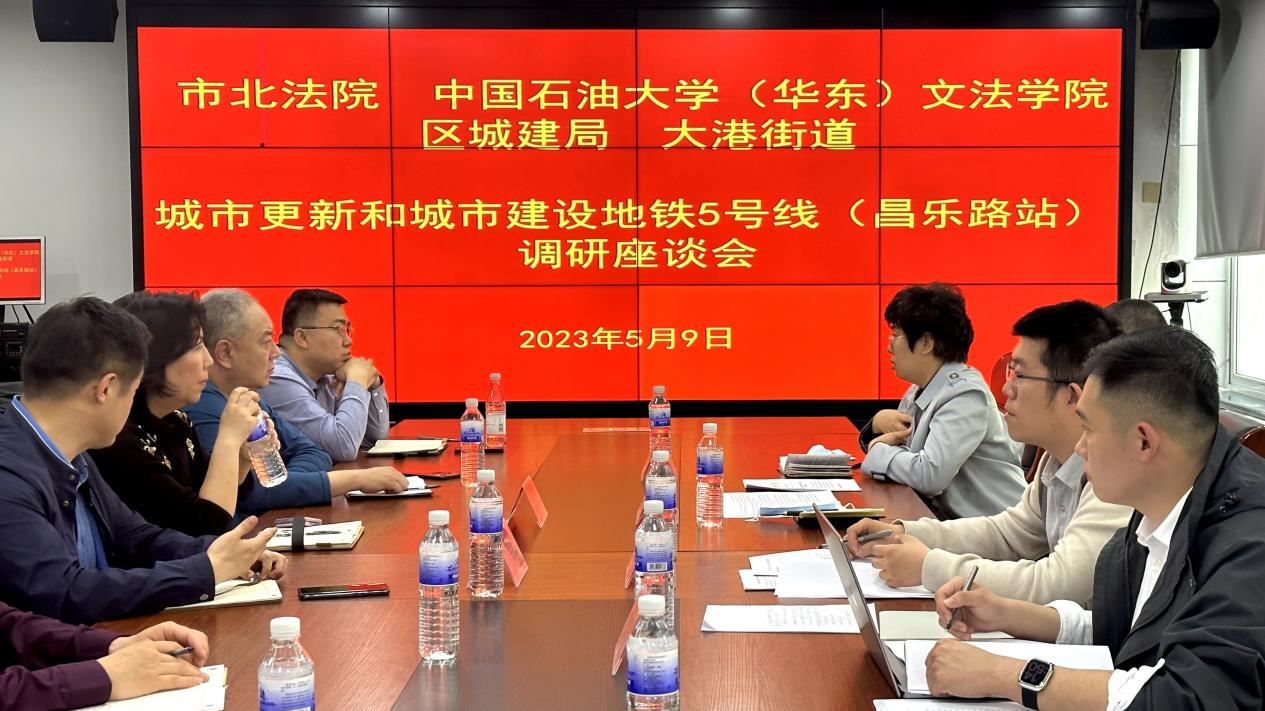 为扎实推进青岛地铁5号线建设工作,5月9日,由太阳成集团tyc7111cc与市北区人民法院、市北区城建局、大港街道联合举办了“城市更新和城市建设5号线(昌乐路站)调研座谈会”。市北法院党组成员、副院长王昆,市北法院行政庭庭长郝海滢,大港街道党工委副书记、办事处主任张翔,区城建局、大港街道等单位的相关领导,我院孙骥老师带队的行政法实务研究团队成员共同参加了此次座谈会。