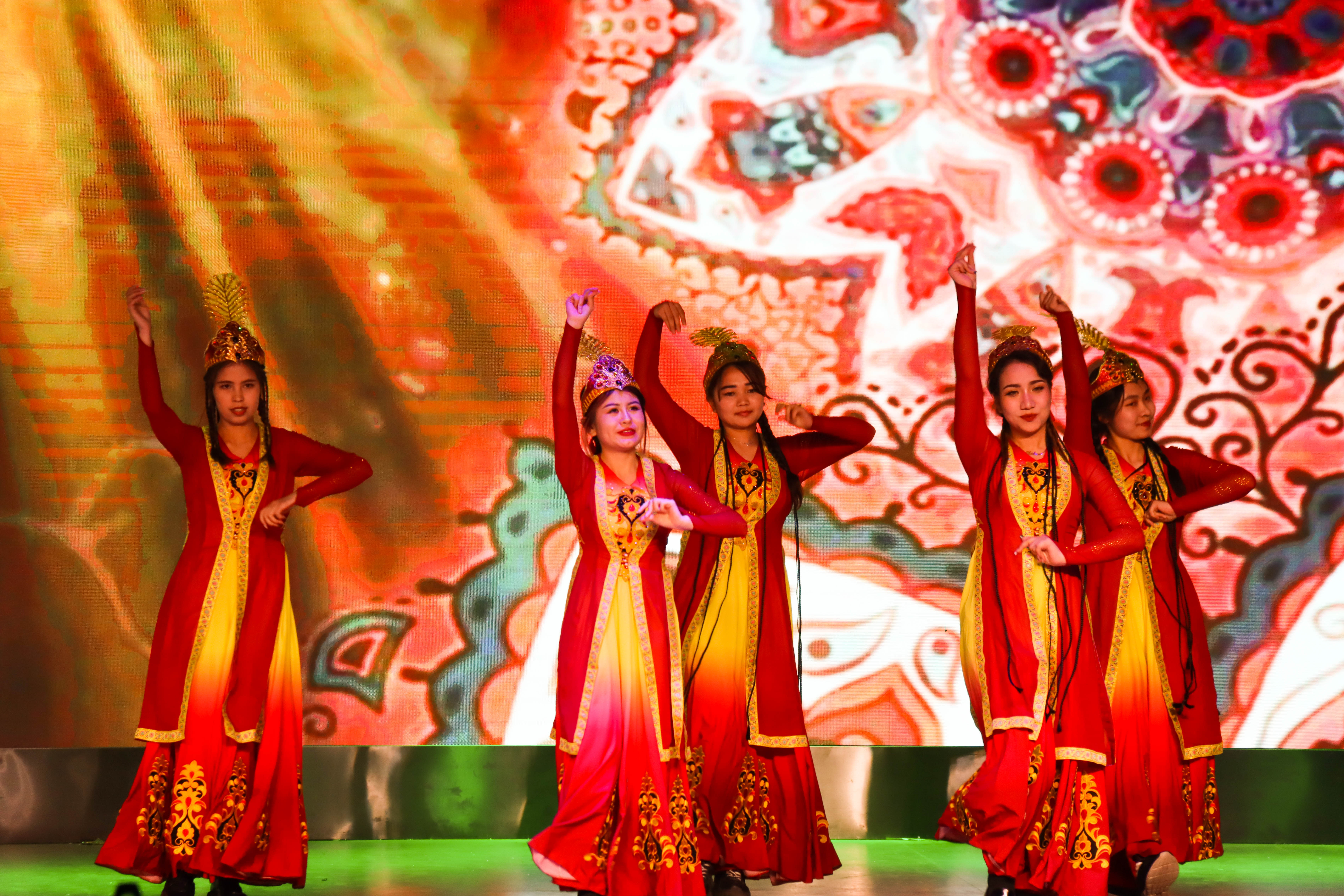 此外,由石大山能新能源学院、储运与建筑工程学院用冬不拉乐器演奏的器乐节目《灵动温婉的姑娘》和由经济管理学院、石大山能新能源学院带来的情景舞蹈剧《琴岛盛开格桑花》让观众们在体会民族文化的同时也能一览独特的民族风情。其中,藏戏是国家级非物质文化遗产,让非遗登上民族文化交流的舞台,也是一种对宝贵的民族文化资源的保护和利用。最后,太阳成集团tyc7111cc学生和全体演职人员共同表演歌舞《美丽中国》。美丽中国不止美在山水之间,更美在五十六个民族的团结和谐。各民族学生携手表演,将爱传承。文艺汇演的互动环节也格外热闹,主持人在台上主持有关民族特色题目的抢答,答对者获得本次文艺汇演的纪念品一份。台下学生积极回应,气氛热烈。