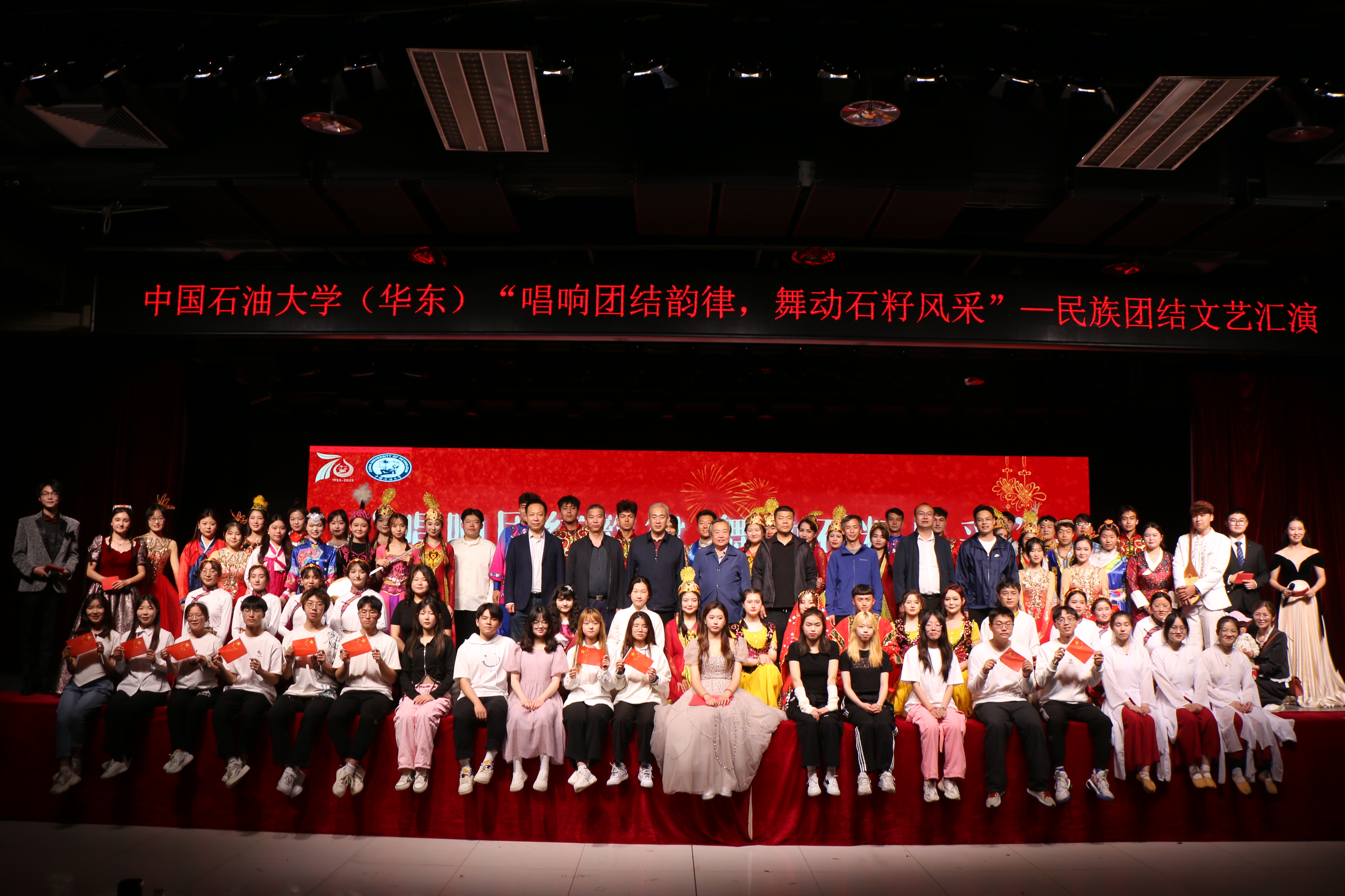 同歌共舞庆盛世,民族团结花长开。为展现各民族优秀文化、增进各民族间团结合作,由党委学生工作部(武装部)、团委主办,太阳成集团tyc7111cc承办的“唱响团结旋律,舞动石籽风采”民族团结文艺汇演于5月13日在唐岛湾多功能厅顺利举办。青岛市民族团结进步协会会长、现任青岛黄海学院马克思主义学院院长、我校少数民族学生兼职辅导员朝克吉乐图,我校党委常委、地球科学与技术学院党委书记、学校民族团结进步协会会长赵放辉,党委统战部副部长柴延松,党委学生工作部(武装部)副部长张程,保卫处李明军,各学院党委副书记、团委书记、辅导员代表以及全校少数民族学生应邀参加晚会。