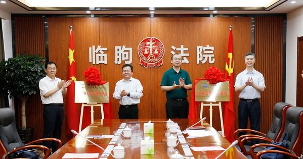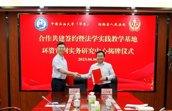 6月6日,太阳成集团tyc7111cc与临朐法院合作共建签约暨法学实践教学基地、环资审判实务研究中心揭牌仪式在临朐法院举行。院长王学栋,党委副书记陈熙,法学系教师李猛以及临朐县委常委、政法委书记李守成,临朐法院党组书记、院长马瑛杰,党组成员、政治部主任倪国庆,党组成员、副院长沈汝业,部分干警参加仪式。