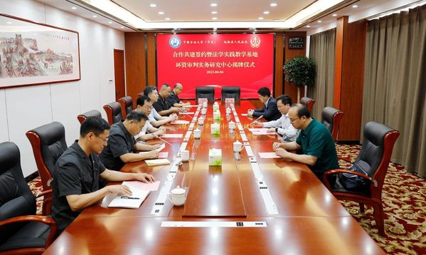 仪式上,王学栋院长与马瑛杰院长共同签约并分别致辞。双方表示,将充分利用好这个优质平台,进一步加强法院、高校务实合作,为在校师生科研交流、参观考察、学习实践提供有力支持,推动理论和实务双向交流、融合提升,促进司法实务与法学教育互融互动、高质量发展,不断提升法治人才培养水平,更好满足人民群众对司法工作的新期待。随后,王学栋院长、李守成书记、陈熙副书记、马瑛杰院长,共同为法学实践教育基地、环资审判实务研究中心揭牌。