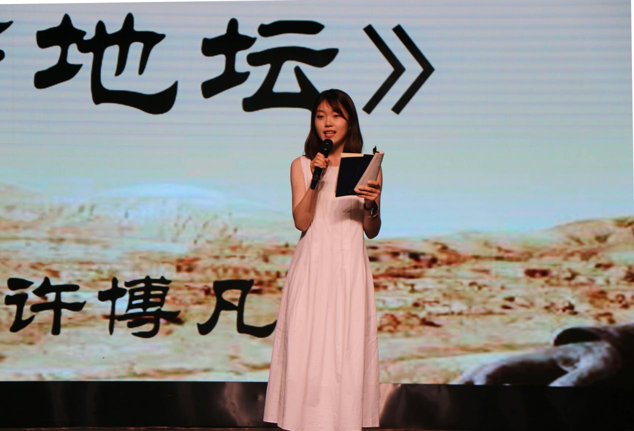 本次朗读大会由赵思怡演唱的一曲《有我》拉开序幕,调动了现场的热烈氛围。在“少年强”篇章,汉语2201和汉语2202班的诗词朗诵《少年》、汉语1902红旗团支部团支书许博凡的朗读《我与地坛》、汉语2101和汉语2102班的集体朗诵《青春中国》以嘹亮激昂的声音,宣告了少年勇肩重担、奋力拼搏的青春誓言。“人生中总会遇到许多不如意的事情,我们要始终以乐观的心态面对这些不如意,而我们的青春因这些品质而闪亮,所以我选择分享《我与地坛》选段。”许博凡在采访中如是说。