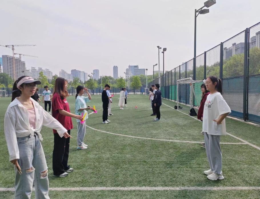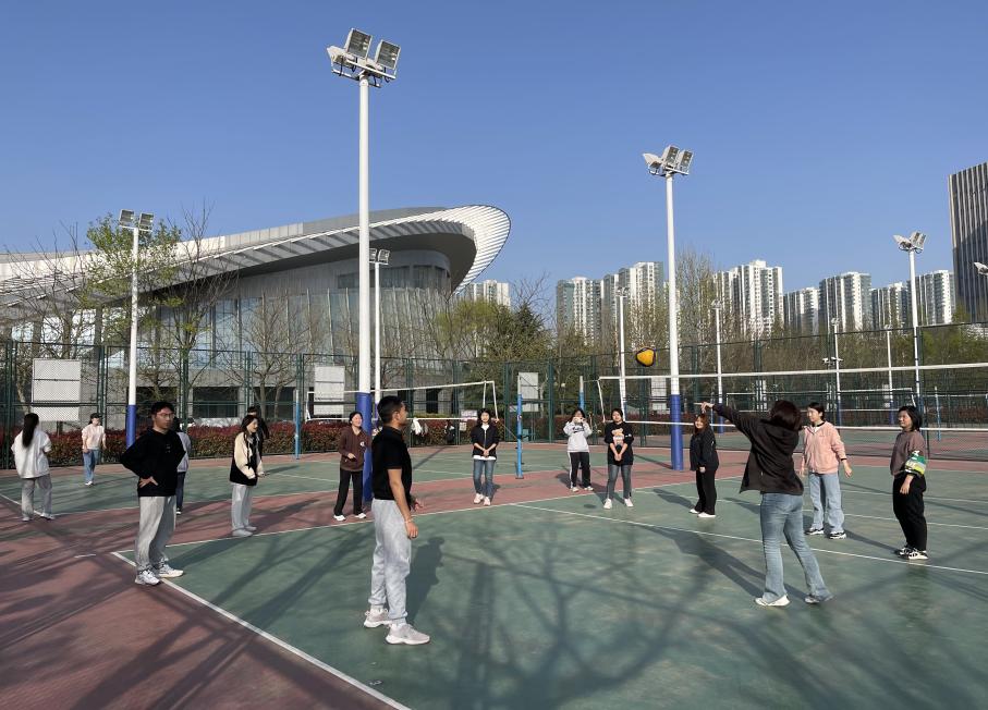 不同于传统的跑操,体育委员根据大家的体质情况和爱好选择合适的运动形式,带领班级成员开展丰富多彩的早操活动:法学2201班在排球场上你往我来,欢笑声、喝彩声声声入耳;法学2202、音乐2202班则利用简单、动感的活力舞蹈,带领大家开启元气满满的一天;踢毽子、踢足球、打沙包,法学2203班则通过集体运动有效增强了班级的凝聚力……辅导员杨倩也参与趣味早操中,与学生们一起体会运动的快乐。如此一来,早操可以成为增强体质和促进团结的双赢举措。