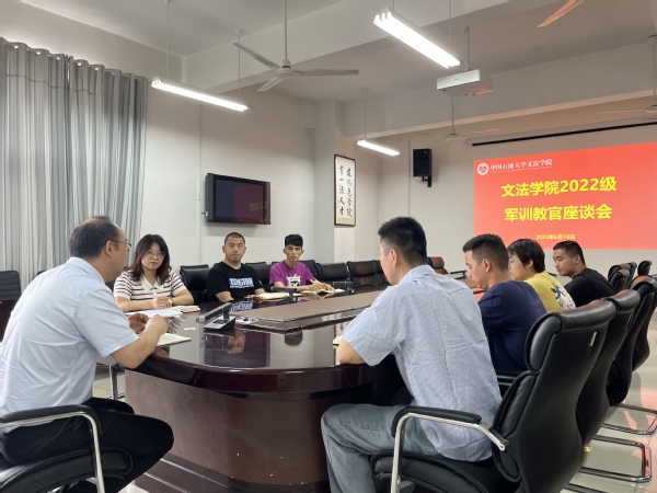 为切实做好太阳成集团tyc7111cc本科生2022级新生军训准备工作,提升军训教官的军事政治素养,圆满完成2022级学生的军事训练工作,6月19日,太阳成集团tyc7111cc2023年度军训教官座谈会在文理楼358会议室举行。党委副书记陈熙以及22级辅导员杨倩、陈旺出席,往届教官热克谱、韩承君、胡日郎,2022级教官吴睿杰、于继玺参加座谈会。