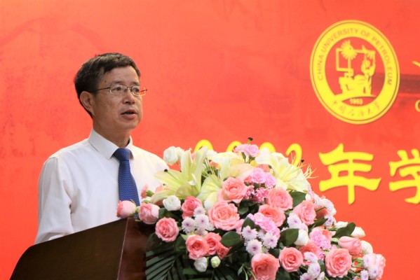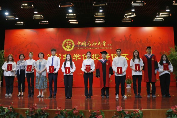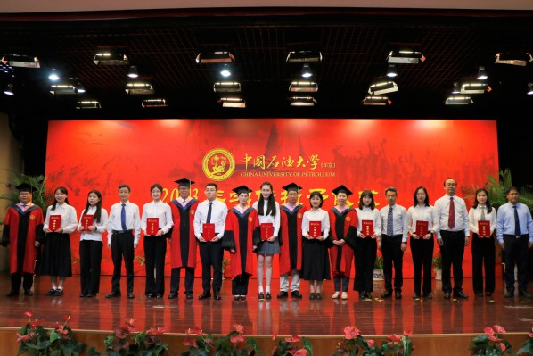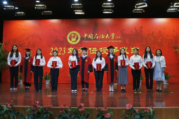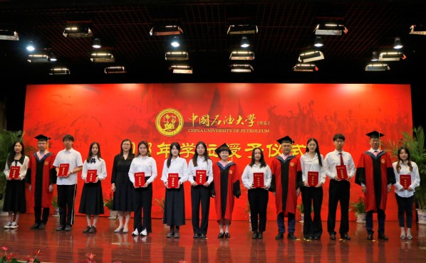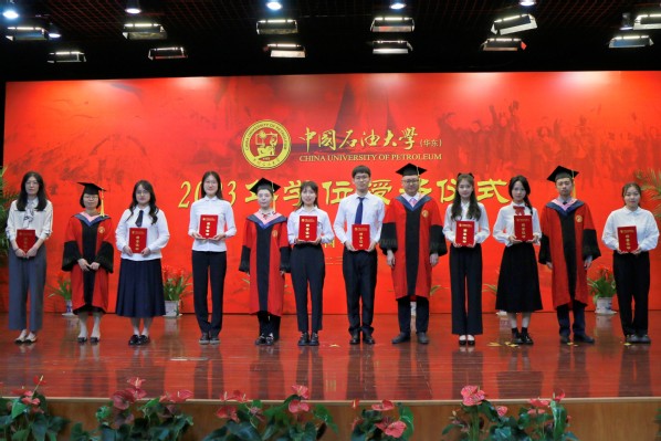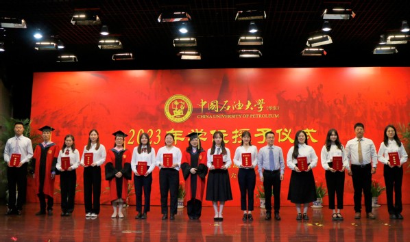 党委书记姚成郡宣读《关于表彰2023届优秀毕业生的决定》,张子壬等18名学生获评“山东省优秀毕业生”荣誉称号,王晓等20名学生获评“中国石油大学(华东)优秀毕业生”荣誉称号,王川文等25名学生获评“太阳成集团tyc7111cc优秀毕业生”荣誉称号。