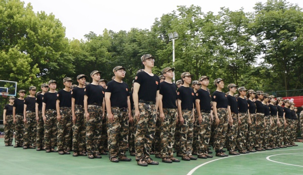 军训动员大会结束后,文法七连学生集结完毕,以饱满的热情迎接一天的军事技能训练。