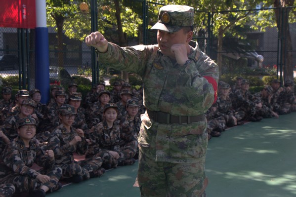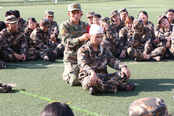 参谋于露在训练场积极指导学生训练,为他们调整姿势,并在休息时鼓励学生:“军训锻炼的是认真的态度,协调的能力和团结协作的力量,希望我们的学生能够在锻炼中磨砺自己,提升自己!”训练期间,副旅长周世光、总教练李令功,军事顾问谭书臻同营长陈熙针对学生军训情况进行讨论总结,为四营七连日后军事训练的顺利进行提供指导意见。