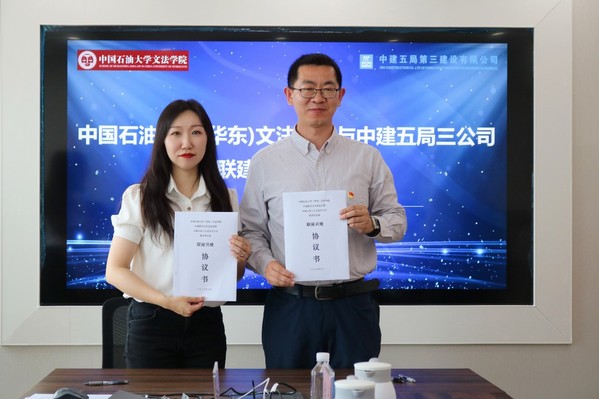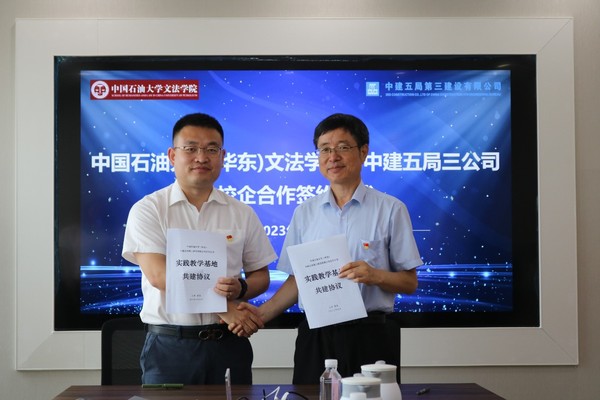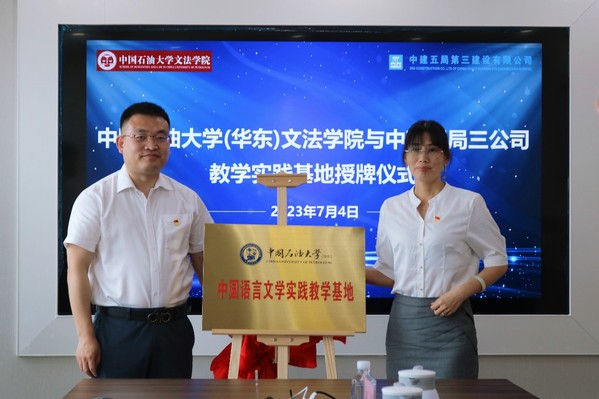 会上,中国语言文学系党支部与中建五局第三建设有限公司北方公司机关党支部签署协议书,结成联建共建支部。中建五局三公司北方公司党委副书记关敬男、学院党委书记姚成郡签署实践教学基地共建协议,关敬男与冷凌副院长共同为实践教学基地揭牌。