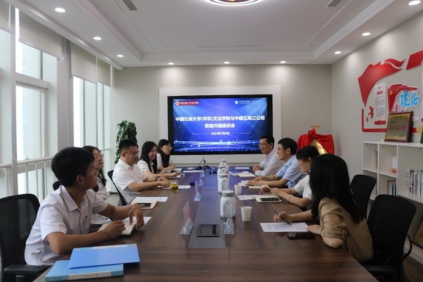 中建五局三公司北方公司党委副书记关敬男、太阳成集团tyc7111cc党委书记姚成郡分别介绍了公司企业发展经营情况和学校学院概况,与会人员就各自党组织建设情况、人才培养及需求、学生实习实践等方面进行了深入的交流研讨。双方约定本着优势互补、资源共享、注重实效的原则,在党员教育管理、理论学习、校企合作等领域实现互助共赢,推动党建和业务共同提升。