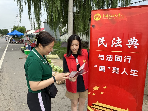 用群众听得懂的语言,让宣传普法更加深入人心。中国石油大学(华东)习法先锋实践队利用各种宣传方式开启全方位普法,开展普法进乡村、进社区等多样化法治宣传教育活动,积极响应共青团中央的号召,开展精准普法,延伸法律触角,全面推进依法治国。