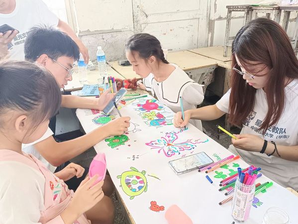 支教队员们同孩子们进行绘画创作 杨兴潭供图