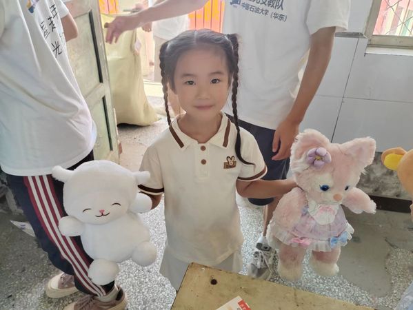 孩子在收到捐赠的玩偶时开心地笑了 杨兴潭供图