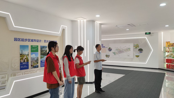 山东省德州数字农谷负责人为队员讲解德州农业品牌及产业园区的发展历程 李娜摄
