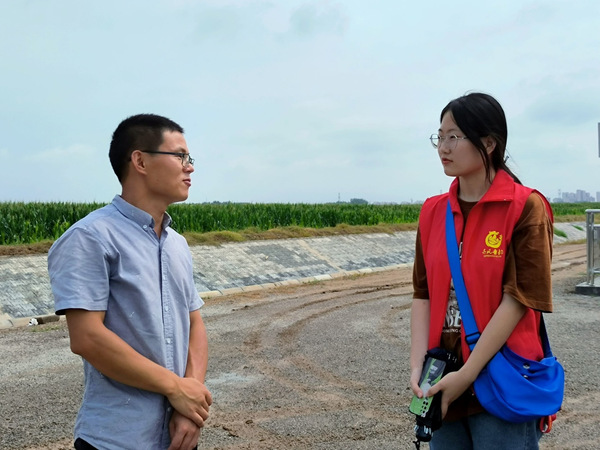 队员进入“鲁望”试验田,观察经过高度机械化管理的玉米田长势,麦田一片即将丰收的喜人景象。一路上,绿油油的玉米地一望无垠,大型喷灌设施随处可见,巨型粮仓矗立在旁,实践队员们对农业现代化的发展程度感到惊讶。何宝石经理说:“我们发展的最终目的还是发展生产力,让村民们过上更好的生活。”在“吨半粮”政策不断落实的过程中,一幅智慧的、生态的鲁西北平原居民的富春山居图正徐徐展开。