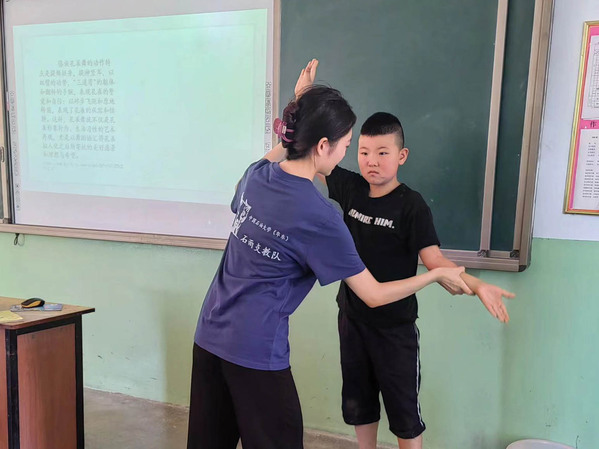 为了给乡村的孩子们带去更好的学习体验,获得更为深刻的思考感悟,石雨支教队不拘泥于传统的上课授教模式,基于当地孩子们缺乏兴趣教育培养的实际情况开展了一系列特色课程。其中包括但不限于音乐、手势舞、影视鉴赏、趣味纸牌、书法等启发类课程,动物世界、探秘天宫、摄影初步等科普类课程:舞蹈课上,孩子们的眼睛聚焦在老师的身上,努力学好每一个动作;书法课上,孩子们手握笔杆,缓慢且坚定地写下一撇一捺;影视鉴赏时,从一开始的好奇议论,到渐渐地沉浸其中,孩子们从各种各样的影片中学到了许多知识,也从不同的人生视角中看到了多彩的世界。