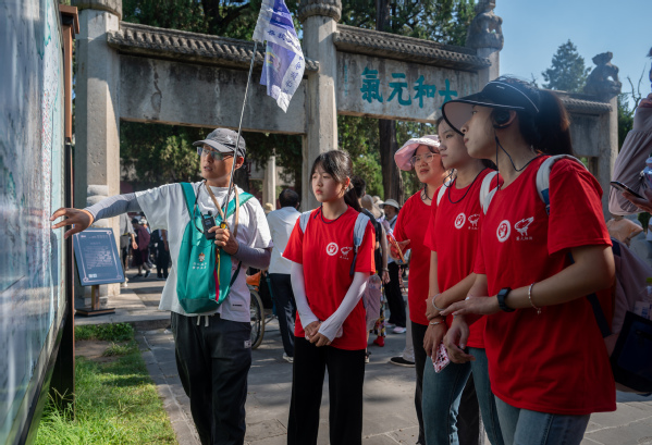 实践队员随三孔导游了解三孔建筑分布 王一龙摄