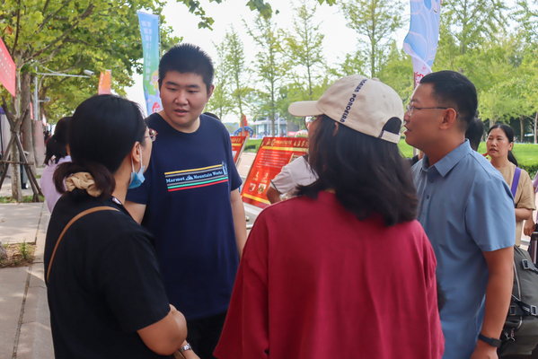 辅导员刘正宇与新生家长交流 朱明璇摄