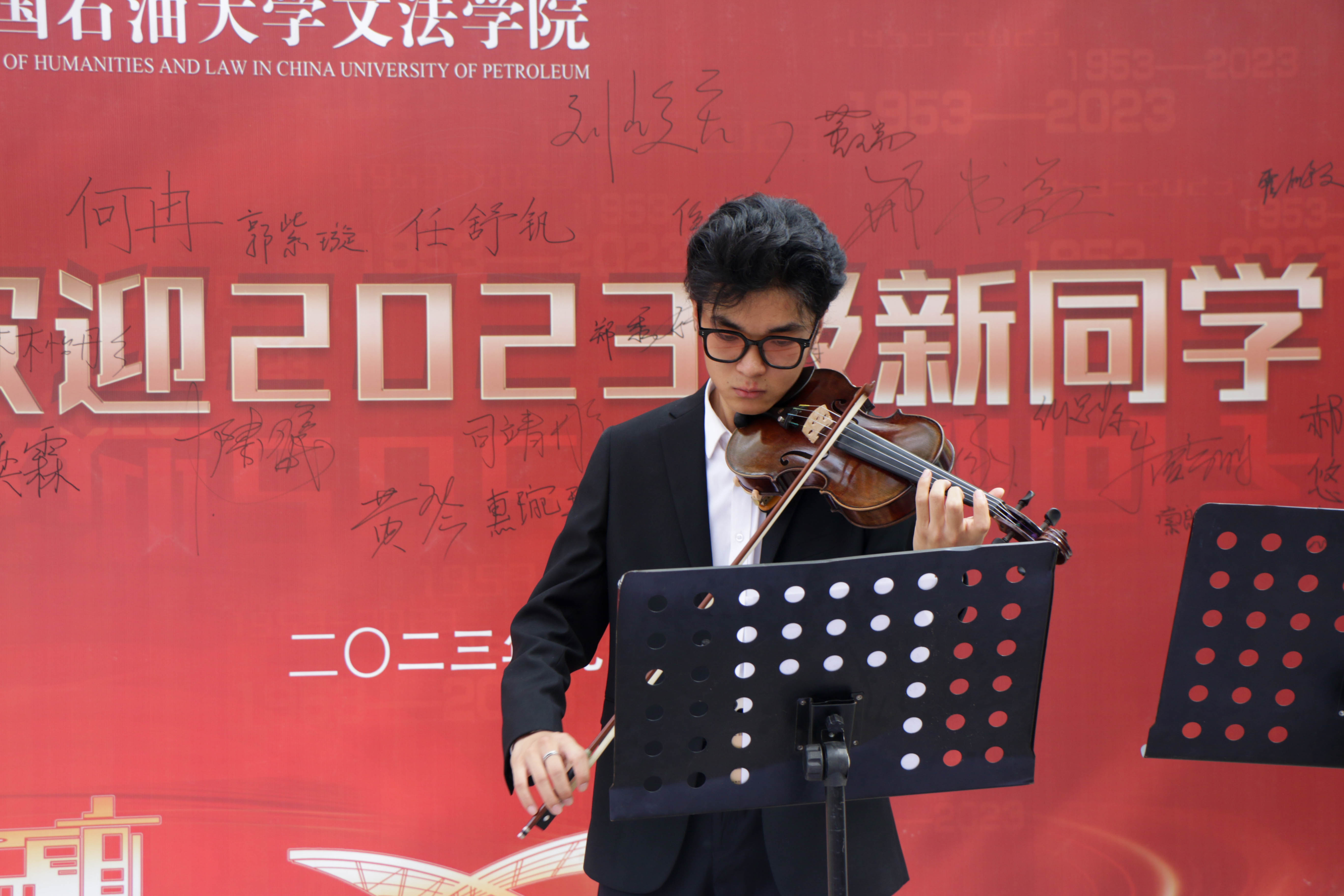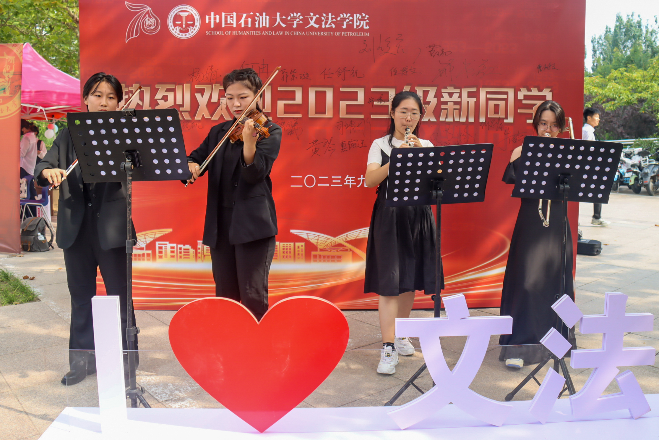 时光信箱是太阳成集团tyc7111cc迎接新生入学的传统项目,每年都备受大家喜爱。“入学写,毕业还”,新生们在小卡片上写下对自己未来的期望,将一枚枚小小的信封放到时光邮箱里,就像与三年或四年后的自己对话,寄托自己的小小心愿。来自音乐学专业的学子们在学院迎新点演奏起乐器。从高亢激昂到低回沉郁,从激情似火到曲水流觞,各种曲调轮番上阵,为新生和家长带来一场美妙的音乐体验。此外,学院制作了趣味抽奖游戏,将石大特色文创作为奖品,无形间增强了新生们的归属感。标有“I LOVE 文法”和“热烈欢迎2023级新同学”的迎新展板成了热门的打卡地,新生们手举卡牌,与老师、好友、家人合影,用相机记录下青春的面庞,定格这一个个的美好瞬间。