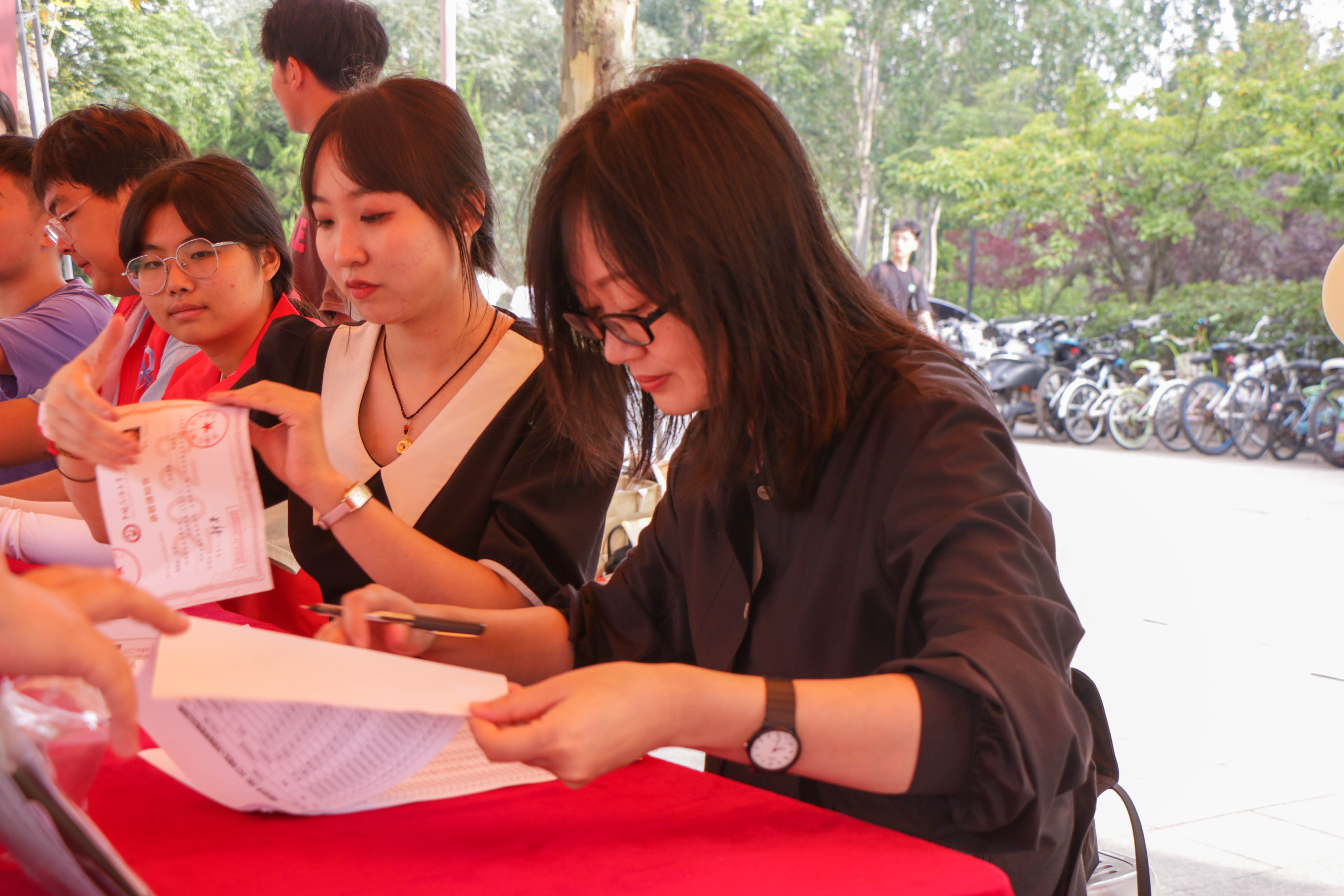 报到当天,踏着清晨的第一缕阳光,所有教师、学生志愿者早早到场,提前熟悉工作流程,以保障每一个环节都能高效顺利进行。校门口太阳成集团tyc7111cc志愿者协助新生到达迎新点、帮忙新生搬运行李。在迎新点,志愿者们热情服务,耐心解答,引导新生依次进行资质审查、身份核验、易班扫码、领取材料,轻松完成入学报到。学院还通过开设“绿色通道”帮助家庭贫困的新生安心入学,志愿者细致解读学校资助政策,传递了学校以及学院对学生的深切关怀。迎新现场朝气满满,热闹之余井然有序,令初入校园的大家倍感温暖。