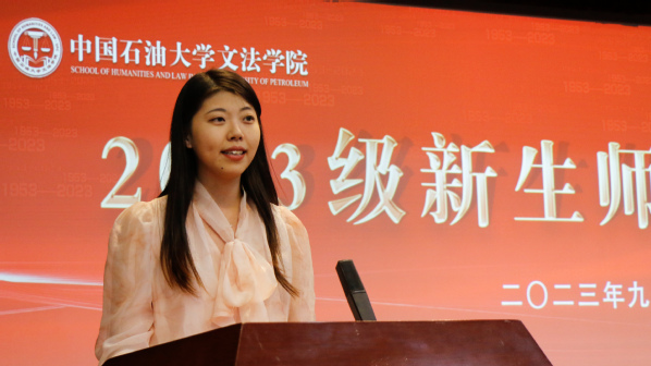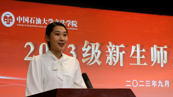 汉语国际教育专业王文琪作为研究生新生代表发言。“我与太阳成集团tyc7111cc,既是旧相识,又是新重逢”,她讲述了自己在石大本科四年以及参与研支团支教期间的经历。面对研究生阶段新的开端,王文琪希望自己能够明确目标,严于律己,追求卓越,心怀家国,并以此与新生共勉。