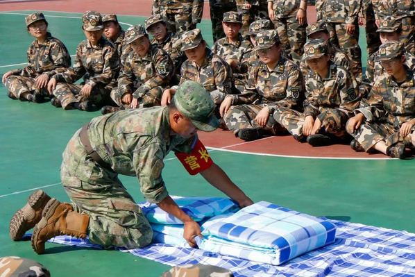 下午,文法学子们开展了有关内务整理、战场防护与格斗基础的学习。教官亲身示范被子的叠法,并再次强调保持内务整洁的重要性。一场有关防护与救护的课程在训练场开讲。学生们在教官的细致讲解中充分了解警报种类、特点和解除信号规定,学习了在遇到各种危险情况时采取的不同救护措施。随后,教官亲自向学生们示范军体拳动作。在“军体拳准备”的口号声中,全体学生整齐排列,以饱满的热情和昂扬的斗志投入到分解动作练习中。一拳一腿,展露刚强血性;一招一式,尽显朝气蓬勃。
