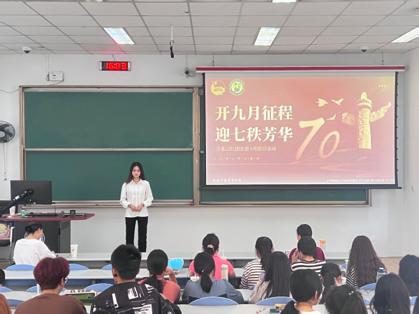 为将学习习近平新时代中国特色社会主义思想、开启入学新征程与校庆主题相结合,深入探讨如何将习近平新时代中国特色社会主义思想真正融入到青年学生的学习和生活中,引导支部成员将习近平新时代中国特色社会主义思想学习入脑入心,更好地传承石油精神,汉语2201团支部开展了“启九月征程 迎七秩芳华”主题团日活动。本次活动由汉语2201团支部书记刘佳怡主讲,汉语2201班主任张袁月、汉语2201团支部全体成员参加。
