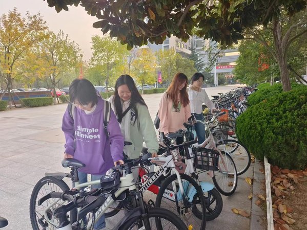 支部成员整理讲堂群自行车 罗焜摄