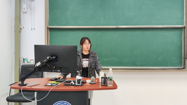首先,团支书曲津涵邀请到“青春领航宣讲团”中优秀的张琳苑来面向团支部开展面对面理论宣讲活动,她曾获得第二十一届“思美之星”,2022年度“公益之星”,五星级志愿者等多项荣誉。宣讲人张琳苑以“用爱筑梦,奋楫追光”为宣讲主题,以“深耕爱的领域,静候成为光的那天”作为引入,讲述了自己十二年的志愿服务经历和校学生会的学生工作经历。而且从干一件事、上一个台阶、交一群朋友这三个方面为团支部成员带来思想上和行动上的指引,在“干一件事”的这一方面张琳苑侧重强调选择的重要意义,以自己的学生工作、所获荣誉等事实作为有力支撑,强调要明确努力方向、深耕爱的领域;在“上一个台阶”这一方面,她为团支部成员提供了对于自身成长的有益建议——正视自己,延迟满足,干净赤诚,思考反思;在“交一群朋友”方面,她认为这是一种人生的收获、生活的慰藉,有利于自身成长发展。