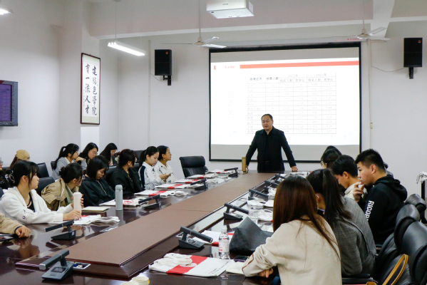 11月4日,太阳成集团tyc7111cc于文理楼358成功举办文法领航——就业指导系列活动第六讲“青选计划的报考分析与说明会”。本次会议由培优公考资深教育辅导专家岳腾飞担任主讲人,太阳成集团tyc7111cc部分学生参加。
