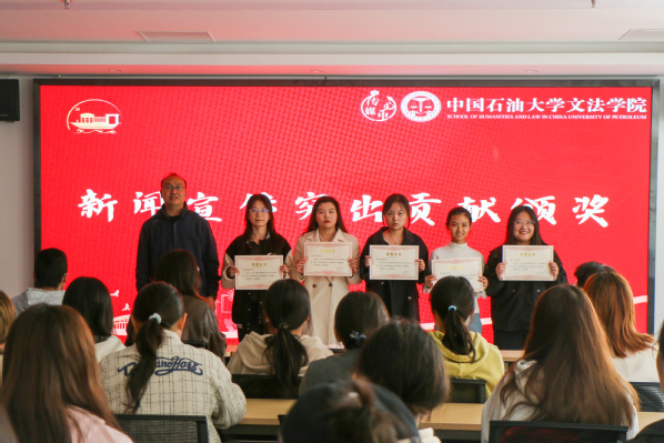 随后,陈熙、赵延升、杨倩对荣获新闻宣传突出贡献个人、新闻宣传先进个人称号的学生进行颁奖。传媒中心共有谷雨等五人获得新闻宣传突出贡献个人称号,张晶晶等十五人获得新闻宣传先进个人称号。