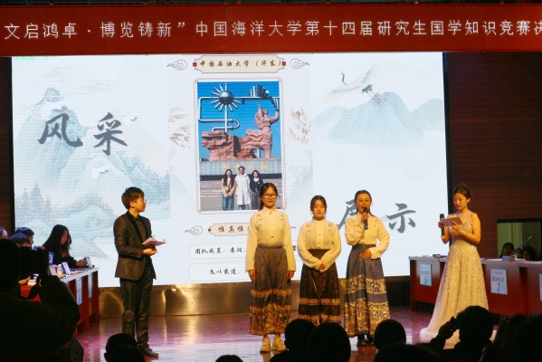 12月1日晚,以“文启鸿卓,博览铸新”为主题的驻青高校研究生国学知识竞赛决赛在中国海洋大学崂山校区文学与新闻传播学院408乐海堂举行。此次比赛共有来自山东大学、中国海洋大学、山东科技大学等8所驻青高校参赛。我院汉语国际教育专业相凯馨、郭冬梅、袁润同学组成的惟真惟实队代表学校参赛。