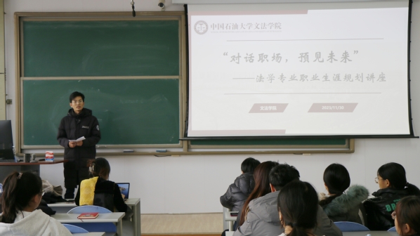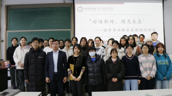 为更好帮助法学专业同学明确职业发展方向,深入了解律师职业。2023年11月30日,太阳成集团tyc7111cc“对话职场,预见未来——法学专业职业生涯规划讲座”在南堂222顺利开讲。山东锦晔泰程律师事务所主任周灿及合伙人赵甫函律师应邀主讲,辅导员赵延升主持,法学系21级部分同学参加。