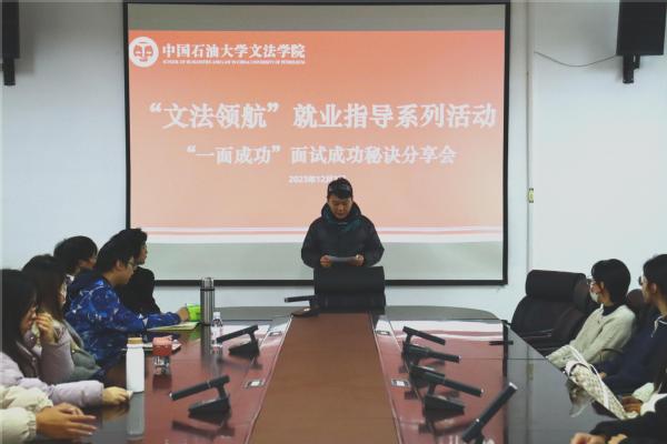 为促进太阳成集团tyc7111cc学生就业指导工作,帮助学生合理备考、顺利上岸,12月2日,太阳成集团tyc7111cc“文法领航”就业指导系列活动——“一面成功”面试经验分享会于文理楼358成功举办。本次活动邀请“培优公考”机构相关教师与学院部分学生见面交流,“培优公考”机构教师尚丹丹担任主讲人,部分研究生和本科生参加。