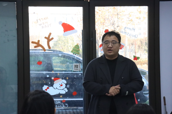 王少昊介绍了公司的基本情况与发展历程。他留学回国后与友人创办留白音乐教育中心,目前有东营和青岛高新区两个校区,共有学生二百余名。琴房教室配置充足,有弦乐、钢琴、流行音乐、声乐、民乐、打击乐教学教室及相关的任课老师,为学生的音乐学习做好充分的准备。当谈到关于就业、考研、出国、创业等有关未来发展的相关问题时,王少昊结合自身经历一一介绍了它们的利与弊。以创业为例,他指出首先要确定的是选址和学生群体的受众,除此之外,还要保证工作时间,校区的运营,相关专业的学科计划以及学生的档案信息等。王少昊鼓励学生充分发挥专业所长,增加教学经验,为后期就业打下一定的基础。