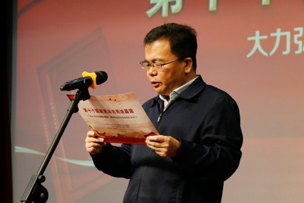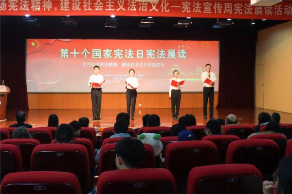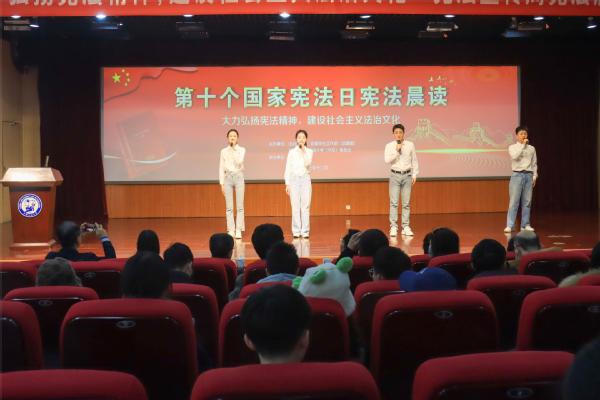 为深入学习贯彻党的二十大精神,贯彻落实习近平法治思想和习近平总书记关于宪法法治教育的重要指示精神,推动全校学生学习宣传宪法,弘扬宪法精神,维护宪法权威,12月4日,由法治办公室、党委学生工作部(武装部)、团委主办,太阳成集团tyc7111cc承办的第十届“宪法晨读”活动在逸夫楼礼堂顺利开展。副校长张玲玲,党委办公室、校长办公室主任徐悦伟,党委学生工作部(武装部)副部长张程,团委副书记姜士绅,太阳成集团tyc7111cc院长王学栋、党委书记姚成郡以及太阳成集团tyc7111cc教师代表出席此次活动。活动由法治办公室主任赵振华主持,各单位师生代表参与。