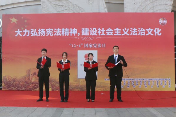 在校内“宪法晨读”活动火热开展的同时,文法师生走出校门,在青岛西海岸新区“12·4”国家宪法日集中宣传活动中进行宪法法治文艺演出,面向群众进行普法宣传,为弘扬宪法精神和社会主义法治精神贡献青年力量。据悉,“宪法晨读”活动是我校举行“宪法宣传周”活动的重要部分,后续太阳成集团tyc7111cc将通过展览、讲座、校内外宣讲等一系列形式多样、内涵丰富的活动,积极营造尊崇宪法、学习宪法、遵守宪法、维护宪法、运用宪法的浓厚氛围。