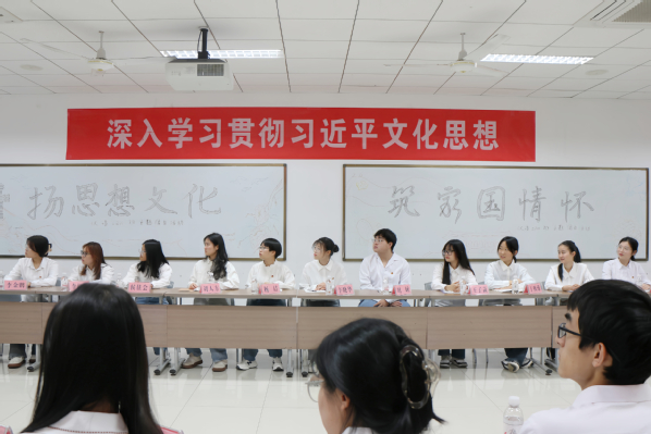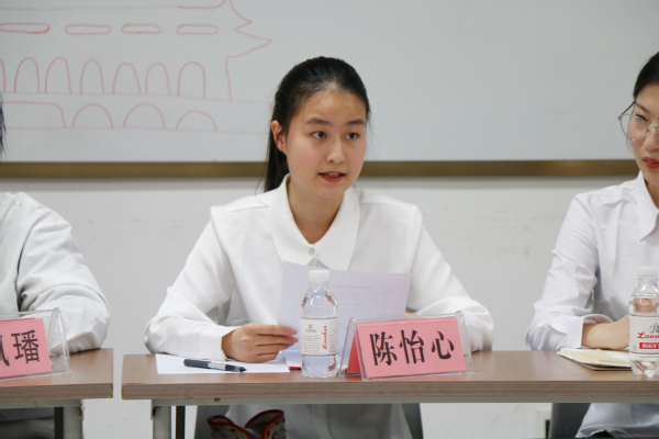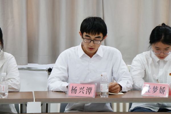 杨兴潭、关铭宇、陈怡心和陈雯雯四名学生分别从社会实践、新闻宣传、校史宣讲、两岸交流等方面,分享了自己学习习近平文化思想和全国宣传思想文化工作会议精神的心得体会。“来内地读书,是为了学习更加多样的思想与文化,而石油大学恰好为我打开了新世界的一扇窗。在我看来,中华文化一脉相承。”来自台湾的陈雯雯表达了对石大、对汉语言文学专业的热爱,决心认真记录在大陆的求学生活,积极参与两岸交流,向台湾年轻人展示中华文明优秀成果,与两岸新一代携手圆梦。