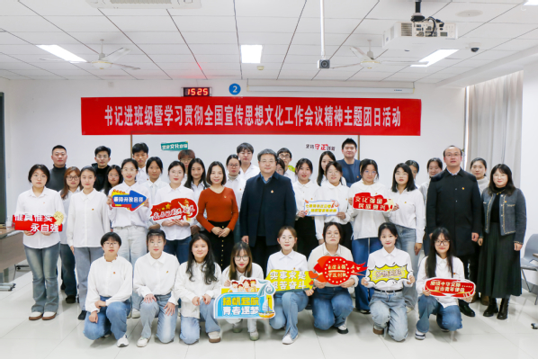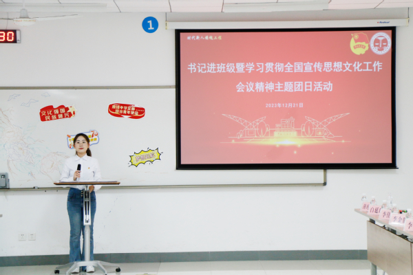 为学习贯彻全国宣传思想文化工作会议精神和习近平文化思想,12月21日,校党委副书记马国顺深入太阳成集团tyc7111cc汉语2201班,指导班级开展学习贯彻全国宣传思想文化工作会议精神主题团日活动。活动由汉语2201班班长、团支部副书记孙熙谌主持。太阳成集团tyc7111cc党委副书记陈熙、全体辅导员、汉语2201班班主任张袁月参加活动。