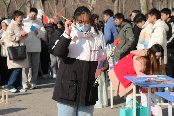 在“灯谜迎春”展区,师生们于汉字间拾趣。“蜜食荟萃,春意可尝”,冬日蜜食摊位前充满欢声笑语,作为冬日特色美食的冰糖葫芦和糖画,为师生们在寒冬中带来独一份的甜蜜与美好。游戏区的活动也热闹非凡,学生们钟情木射,攻守进退中大家情绪高涨;投壶锤丸,荟萃广场上回荡着师生们的加油喝彩声。在“墨香含韵,情寄暖冬”展区,师生们挥毫泼墨,书写暖冬心意,传达美好愿望。在“锣鼓声声除旧岁,招财纳福醒狮来”活动区,师生们亲自制作“醒狮挂件”,活灵活现的醒狮为冬日增加了一抹亮丽的色彩。