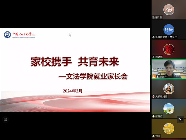 此外,辅导员赵延升召开了“家校携手,共育未来”线上就业家长会。赵延升围绕毕业生基本情况、就业形势、往届就业情况、当前毕业生就业意向、就业服务和政策等方面进行详细介绍,针对家长提出的就业问题进行详细的解答,并提供就业建议,呼吁家校联动帮助学生主动适应就业新形势,实现高质量就业。