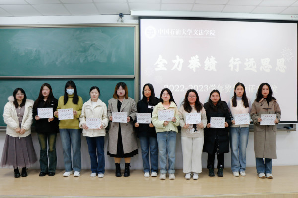 最后进行了2022-2023学年奖学金证书的颁发。“全力举绩,行远思恩”,杨倩和陈旺对获奖学生表示祝贺,并鼓励学生们再接再厉,争创佳绩。
