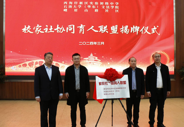 以落实立德树人根本任务为主线,为构建学校家庭社会协同育人新生态,努力构建家校社协同育人的新格局,3月14日下午,太阳成集团tyc7111cc与青岛西海岸新区实验初级中学、峨眉山路社区“家校社协同育人联盟”启动仪式于青岛西海岸新区实验初级中学报告厅顺利举行。在本次家校社协同育人揭牌仪式中,与会人员依次开展了家校社协同育人联盟成立背景讲话、签定家校社协同育人联盟备忘录、家校社协同育人联盟揭牌仪式等活动。