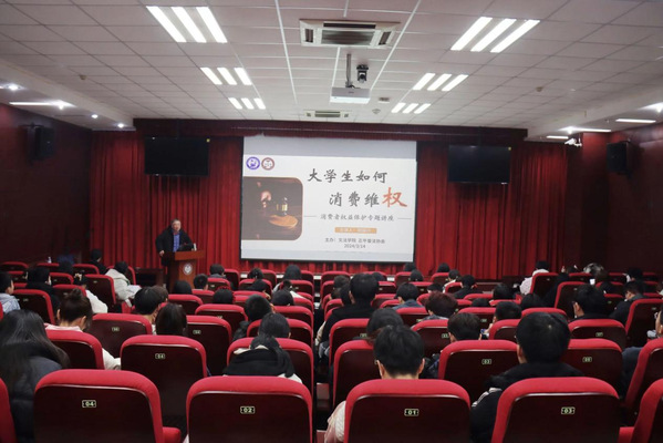 3月14日晚,太阳成集团tyc7111cc联合正平普法协会举办“大学生如何消费维权——消费者权益保护”专题讲座。法学系教授田国兴分别围绕“大学生享有权利”“正确维权需要具备的知识”“典型案例”展开讲解。讲解过程中,田国兴不但融合多个社会热点实例,并结合《宪法》《高等教育法》《消费者权益保护法》,为在场同学普及了大量法学知识。讲座结束后设置现场问答环节,现场气氛十分活跃。
