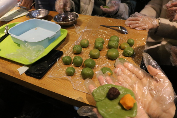 在体育委员杨亦然的统一指导下,同学们分组行动,开始了青团的制作。和面团、包馅、揉圆,每一个步骤都凝聚着同学们的用心与努力。不一会儿,一个个绿油油的青团便呈现在大家眼前,它们仿佛承载着同学们对家庭美满、家人长寿的美好期许。