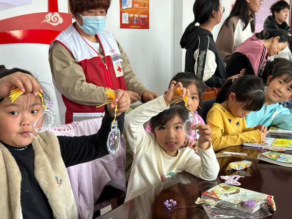 活动室内,支部成员与小朋友们共读绘本,陪伴他们在书籍的海洋里遨游,《笑猫日记》、《向上吧,孩子们!》等读物在支部成员绘声绘色的讲述下变得生动起来,给小朋友们新的体验和感悟。随后,支部进行了趣味问答环节,题目设置了诗句拼贴与脑筋急转弯,小朋友们积极举手抢答,获得了书签、名言贴纸等小礼物,现场气氛高涨,一片欢声笑语。作为这一环节的结束,支部成员和小朋友们共同背诵古诗《咏柳》,春光正好,朗朗的读书声传遍了活动室的每一个角落。