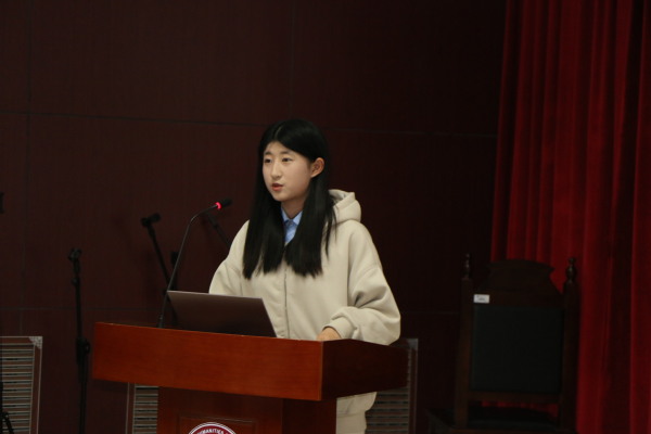 团校23讲聚焦于“优秀团学干部经验分享会&国奖获奖经验交流”。苏国阳围绕“团支部建设”讲述了举旗定向、筑牢基础、成为标杆、讲好故事四个方面。他提出,建设好的团支部要根据班级或专业特色设计一个口号,打造一个体系,确立一个发展方向,并要根据“三会两制一课”原则制定支部发展制度与支部学习制度,重视“三力一度”。他还与在座学生分享了团支部答辩的PPT,全面细致地分方向讲解,提出打造特色团支部绝不只是依靠团支书,更需要班级每位成员的共同努力。“法学2201团支部找准支部定位,致力于打造以普法为中心的社会实践与志愿服务团支部。”贺小凡介绍道。她从如何策划好、如何组织好、如何宣传好、如何一直好进行重点讲述,并进行了校级优秀团日活动的经验分享。第三位分享人是国家奖学金获得者汉语2101吕皓月,她从专业实力、综合实力与答辩效果三方面深入讲解国奖。她还分享了自己的答辩PPT,从个人展示、竞赛特长、学生工作与技能实践等四部分进行详细阐述。“追风赶月莫停留,平芜尽处是春山。作为一名团支书,我会向优秀团支部学习,扎根支部实际,及时确立支部发展方向,努力建设有特色、有活力、争先进的团支部!”汉语2302团支书孙佳家如是说。