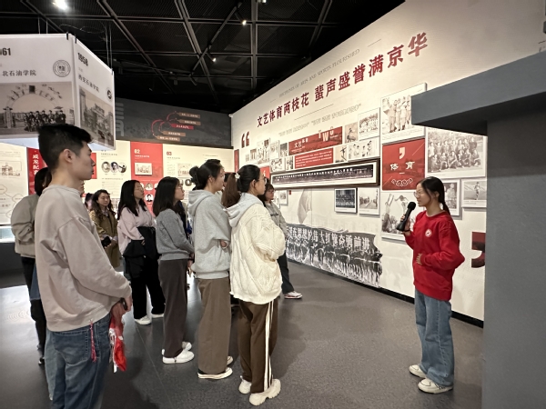 全体成员于图书东馆集合,随后在展馆工作人员的带领下依次进馆。校史馆包括前厅、序厅、序章、编年体展区、专题展区、愿景厅、艺术馆等组成部分。讲解员首先为成员们阐释了校风校训的深刻内涵。随后,成员们在讲解员的引导下,结合展板上的内容,进一步了解到学校从“北京石油学院”、“华东石油学院”到“石油大学”再到现如今的“中国石油大学”的发展历程。紧接着,在讲解员的详细介绍下,成员们对于学校建校以来收获的科研成果、培养的优秀人才也有了更为全面的了解。其中,前国务院副总理吴仪等都是学校培养出的优秀人才。法学专业学生第二党支部书记吕皓月表示:“校史馆是传承校风校训的重要载体,此次参观让我们深刻体会到学校与共和国发展共命运、与祖国石油工业同呼吸、与石油高等教育共奋进的光辉历程!”